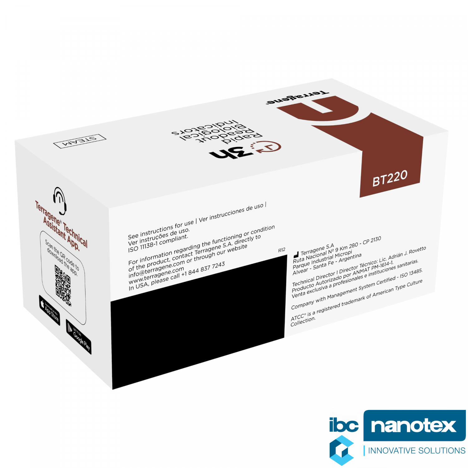 BT220 Биоиндикатор. 3 часа. Автоклавирование (паровая стерилизация). Bionova Terragene