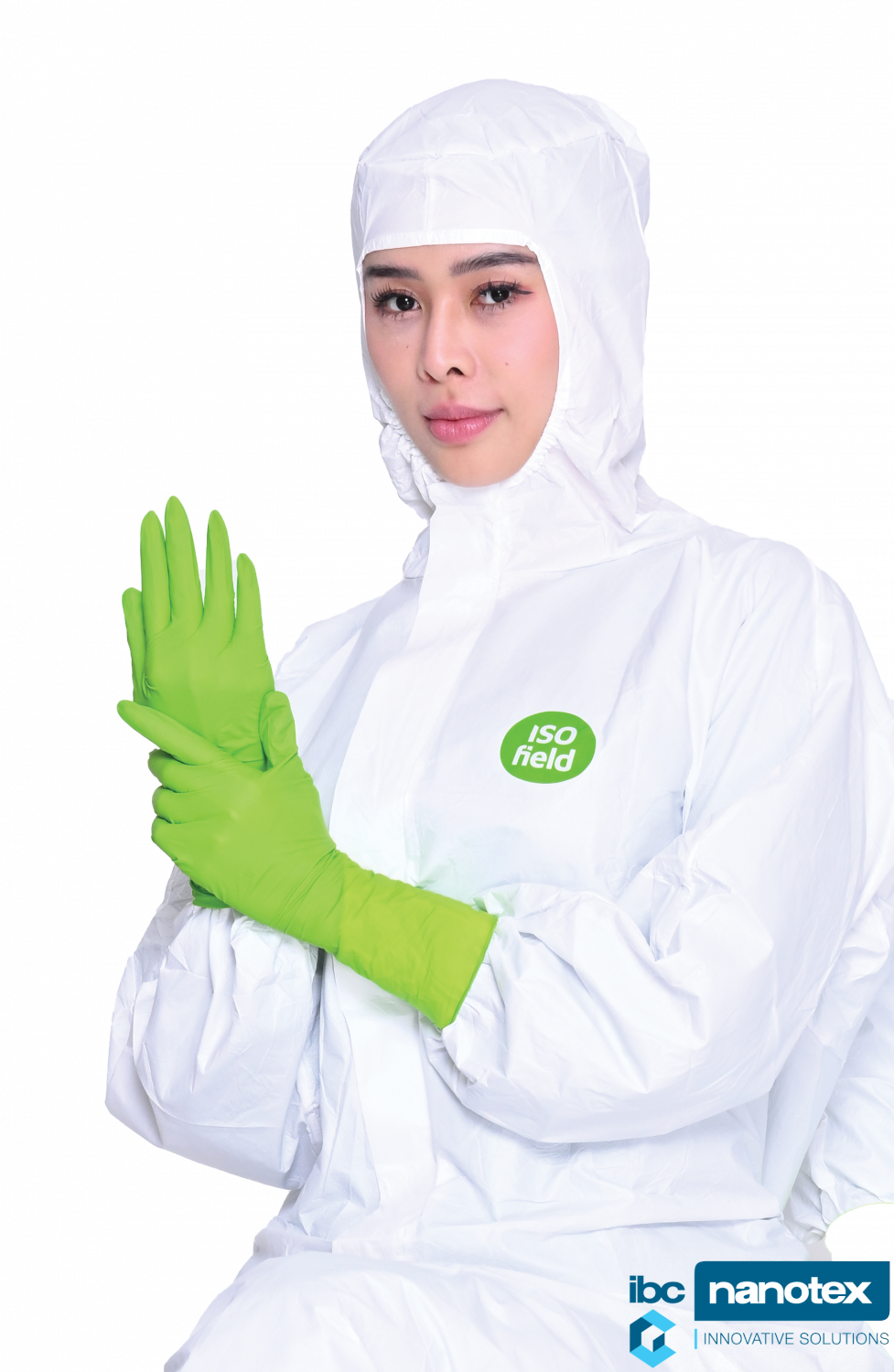 - Нестерильные зеленые нитриловые перчатки Isofield Gecko длиной 300 мм
