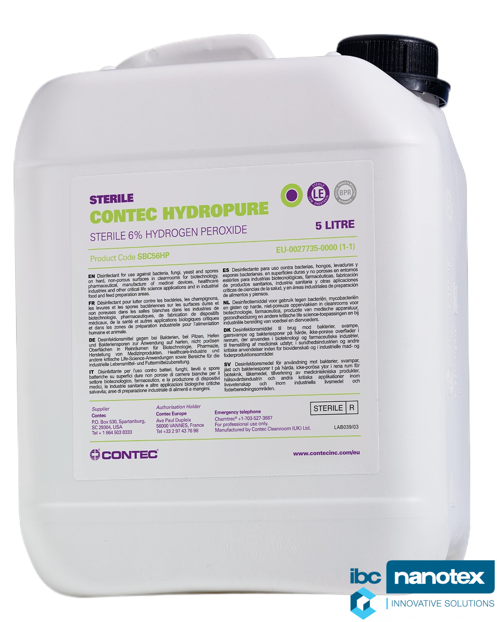 Contec Sterile HydroPure — это смесь 6%-ной перекиси водорода и воды для инъекций или очищенной воды.- Эффективно против бактерий, грибков, плесени и дрожжей, практически не оставляет следов и имеет гарантированный уровень эндотоксина менее 0,25 EU/мл, что делает его идеальным для использования в местах контакта с продуктами
